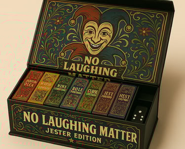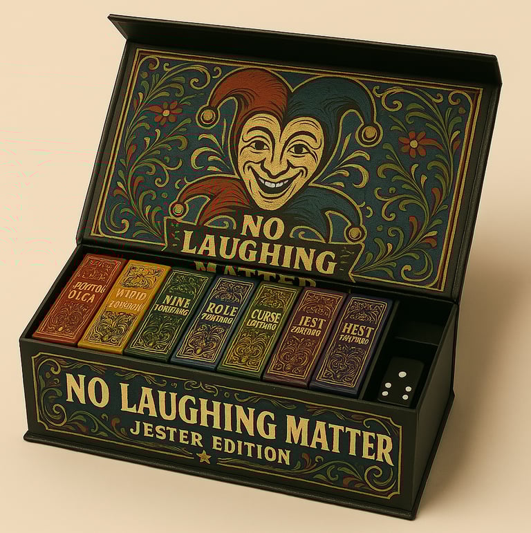No Laughing Matter is an absurdly theatrical, performance-based card game for 4–20 players where breaking character means defeat. Inspired by vintage circus shows, chaotic improv, and satirical humour, this isn’t your average party game — it’s a full-blown experience.
